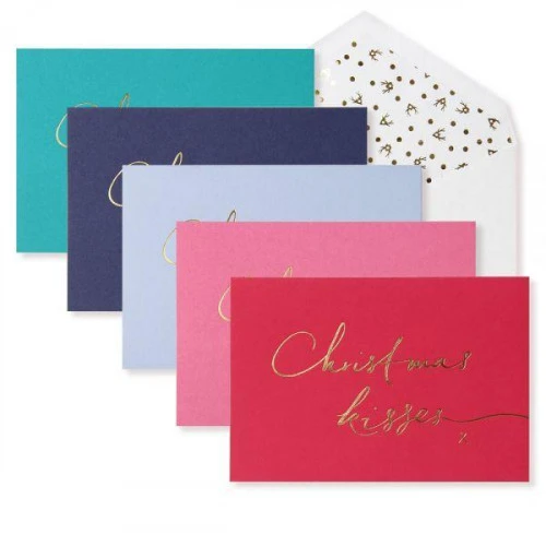 Presentation:Â Deluxe Single card with gold foil writing, matt textured, recycled and FSC certified card Christmas card. Comes with white envelope with gold foil trim and gold foil reindeer insert.